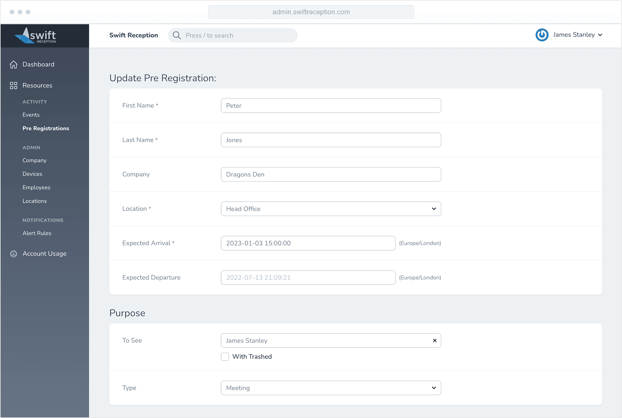 When you first run the Swift Reception app on the iPad, it will ask to be Activated. This can be done by scanning the QR code generated on the Admin Panel > Device screen.